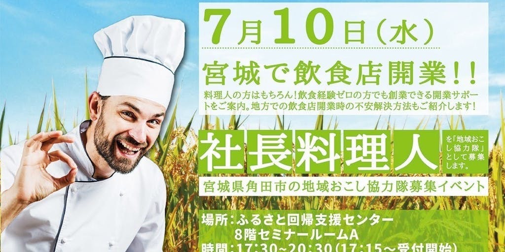 地域おこし協力隊募集セミナー 経営者と料理人を両立する 社長料理人 育成プログラムを活用して宮城で飲食店開業しませんか