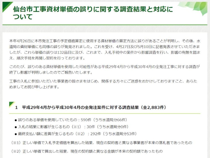 本来の落札者が受注できず 仙台市の積算ミスで30件 日経クロステック Xtech
