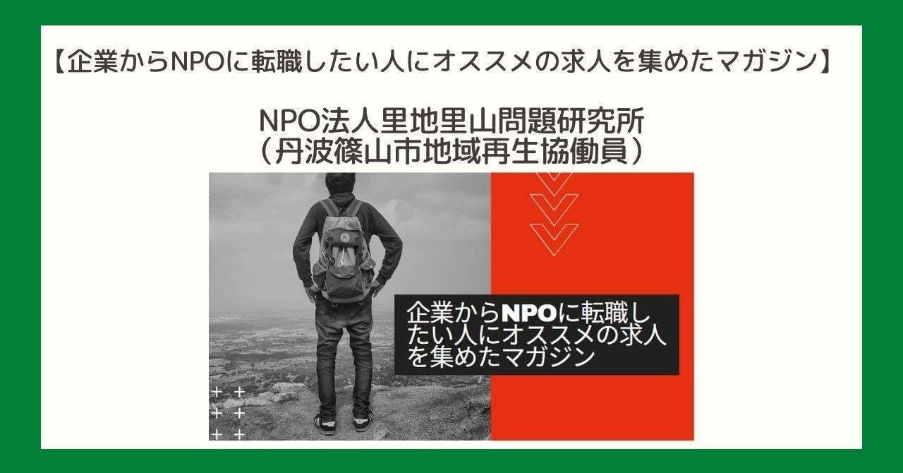 未経験ok 6 19迄 企業からnpoに転職をしたい人にオススメ求人 Npo法人里地里山問題研究所 今給黎 辰郎 Note