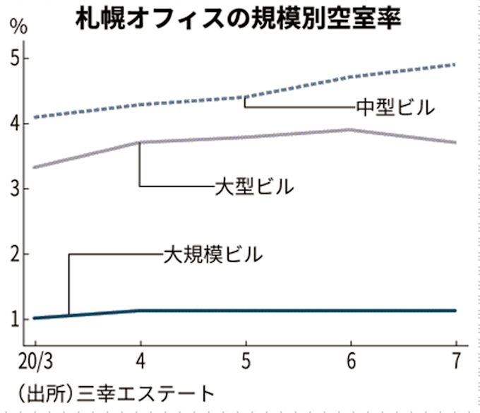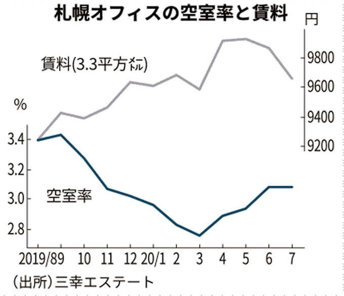 新型コロナ 札幌のオフィス 空室率上昇 在宅勤務拡大で 日本経済新聞