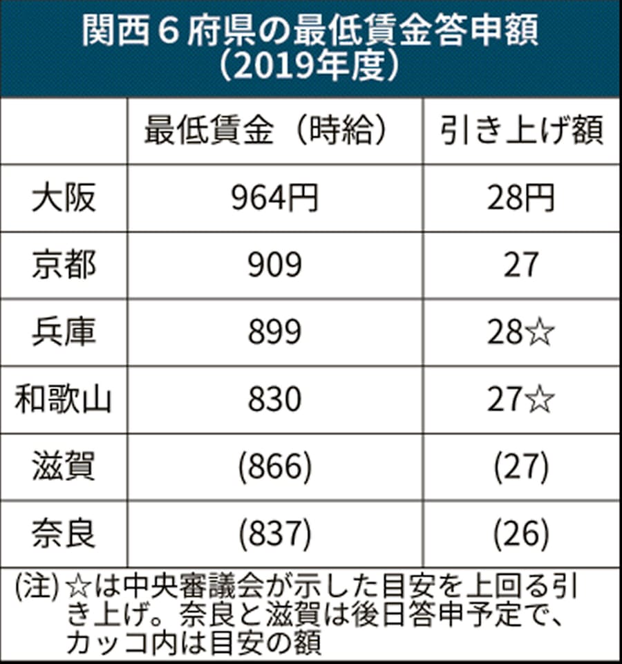 関西の最低賃金上げ幅最大 大阪964円 京都909円 日本経済新聞