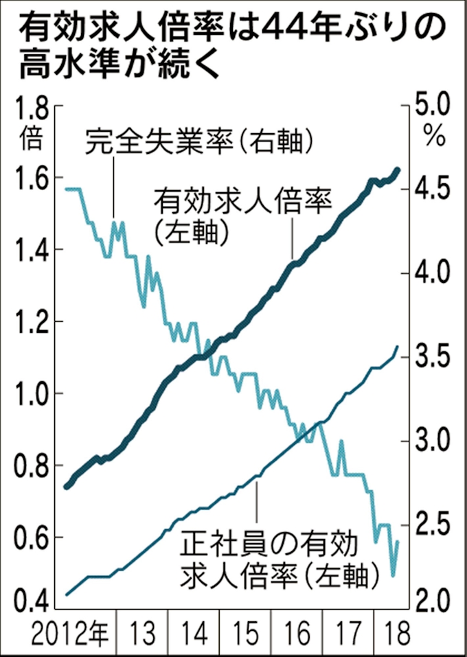 16年6月の有効求人倍率は24年7カ月ぶりの高水準 完全失業率も年11カ月ぶりの低水準 ひらく ナビ50