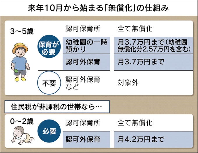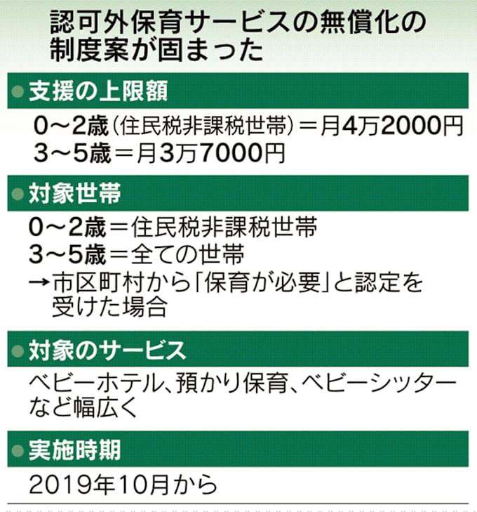 認可外保育に月3 7万円補助 政府案 3 5歳全世帯 日本経済新聞