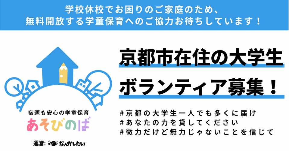 京都の大学生に届け 小さな学童保育が今 少しでもできること そして みなさまに協力していただきたいこと 合同会社なんかしたい Note