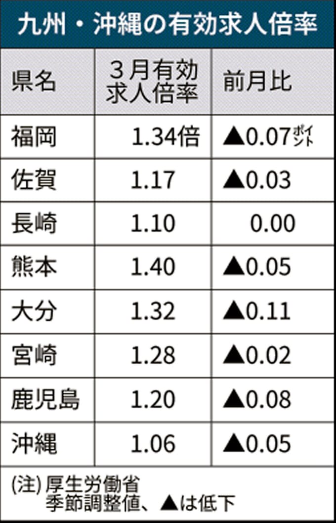 新型コロナ 長崎 沖縄1倍割れ 九州 沖縄の5月有効求人倍率 日本経済新聞